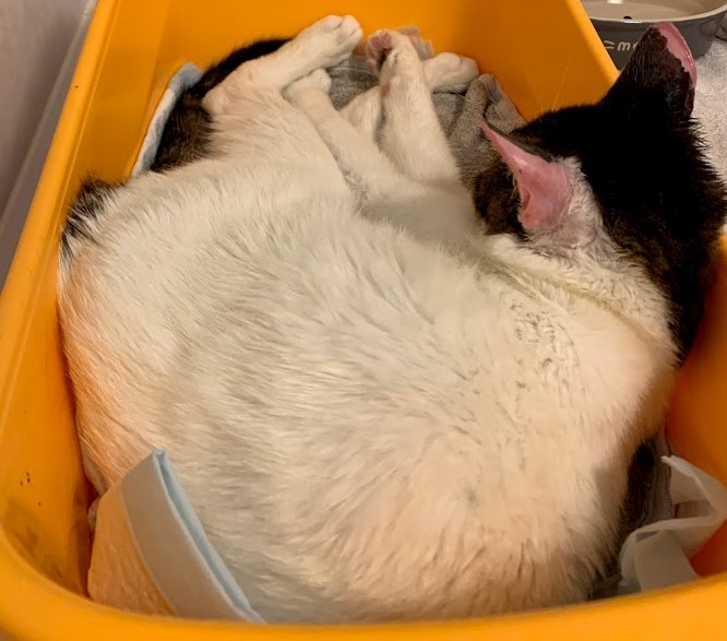やせた体、耳の毛はすべてなくなり必死に搔き崩す