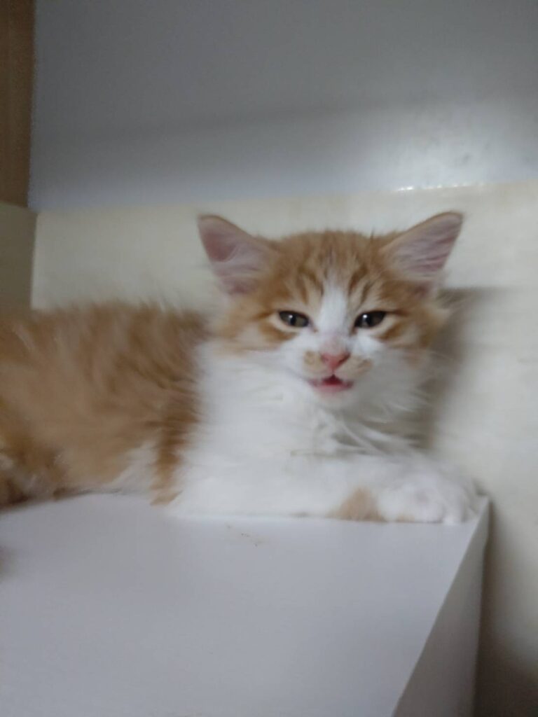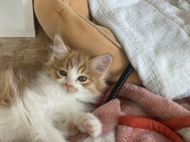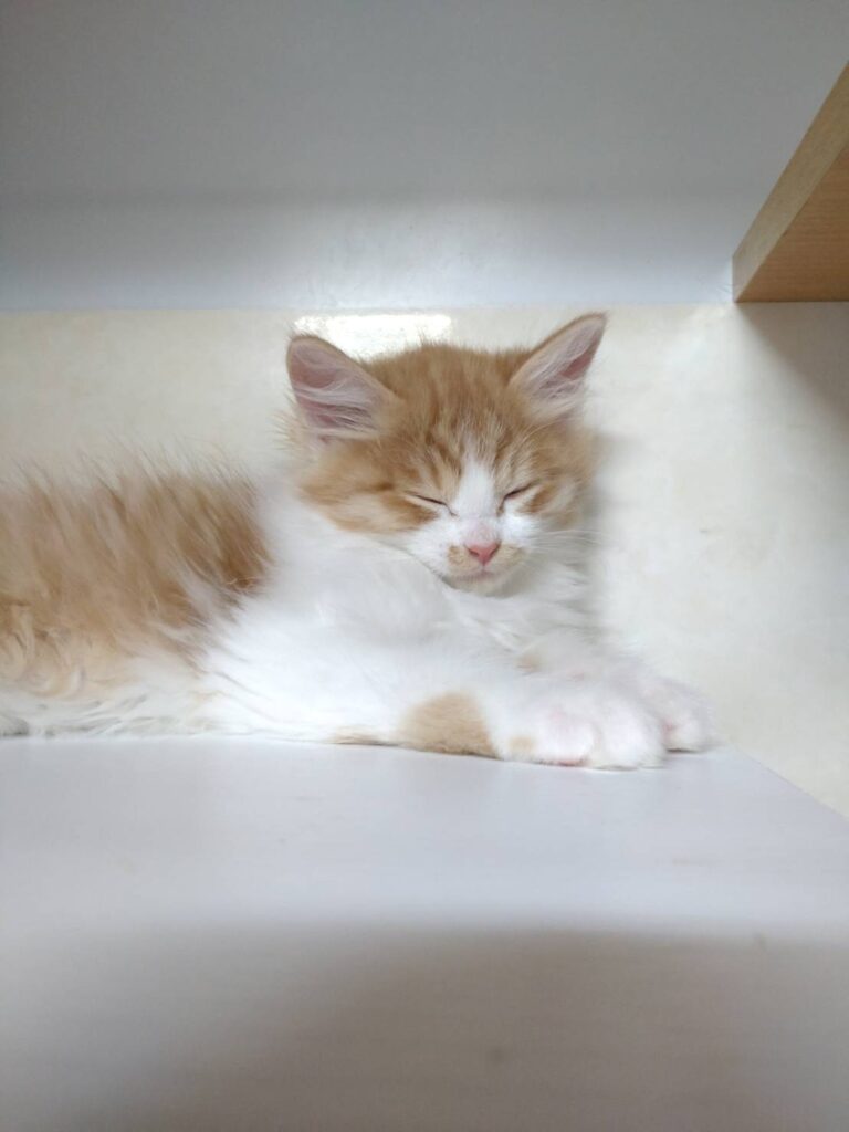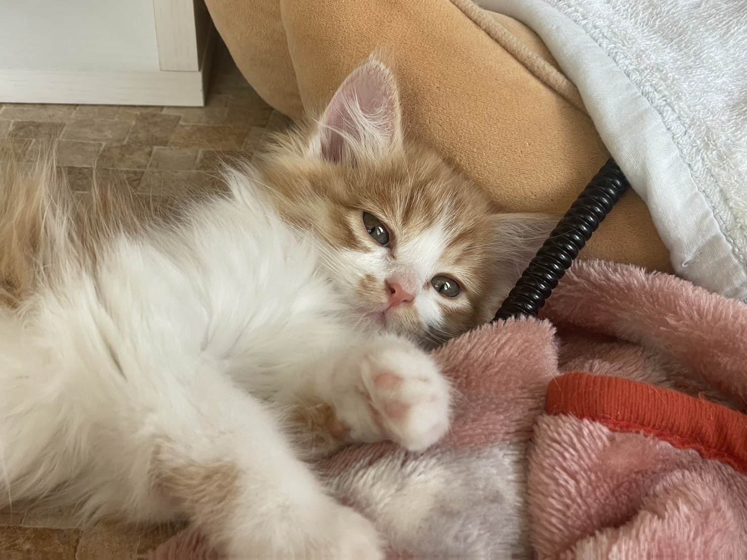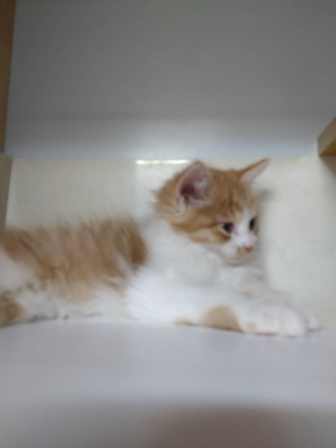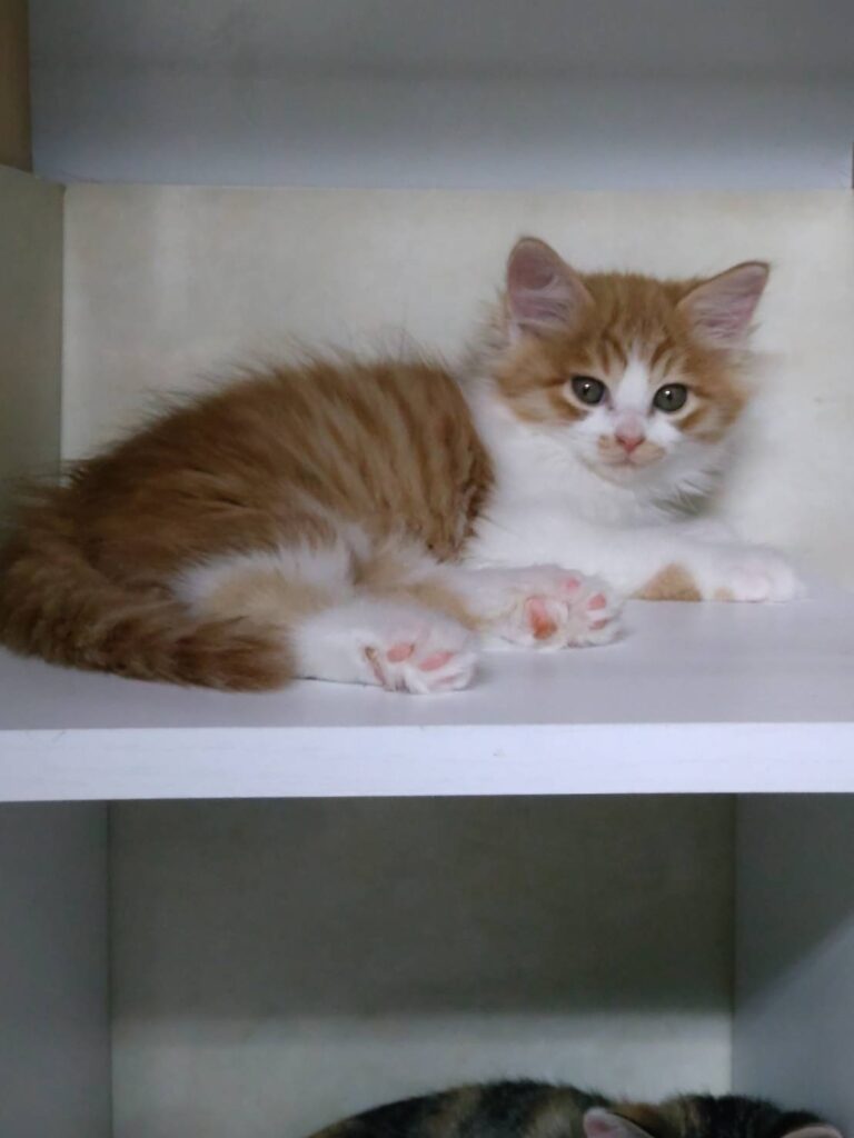 母猫と一緒にお家の中で育ててもらい、2か月になったのでラウンジに移動してきました。