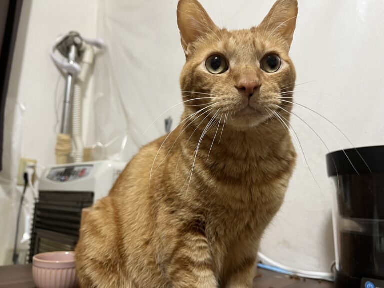 元の家に居たときは、人が苦手で触れない子だったようですが、現在はナデナデが好きになり、撫でられたい時は横にそっと来ます。