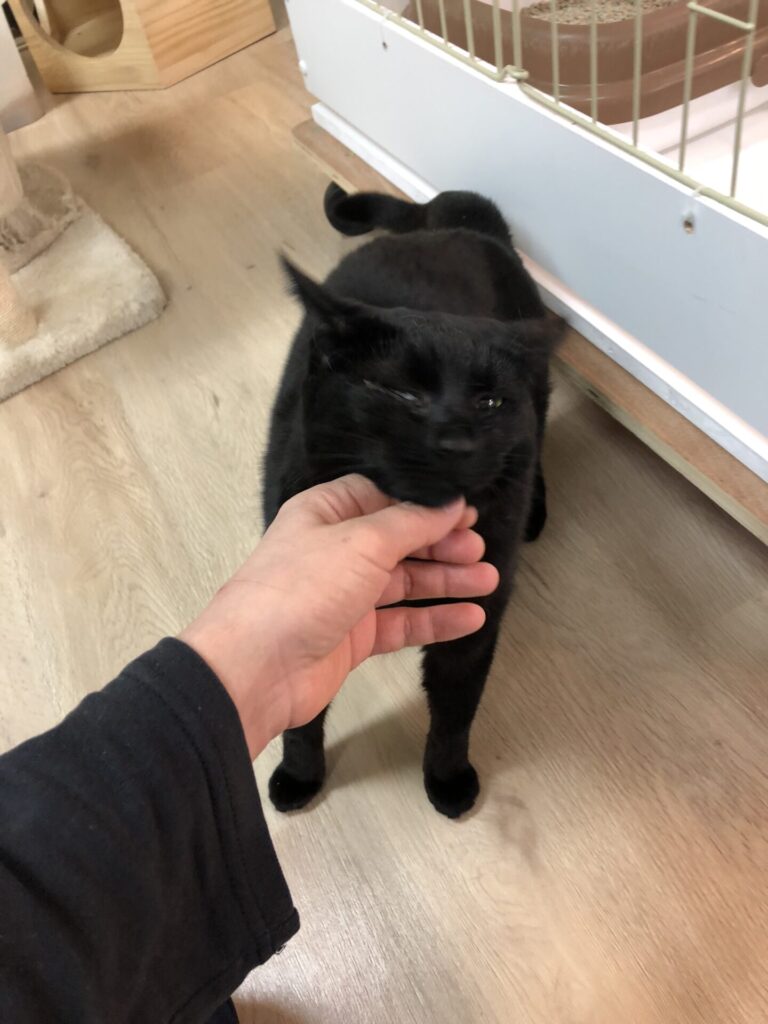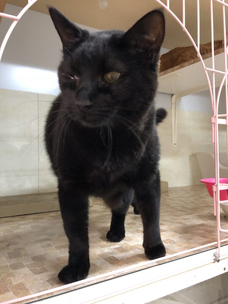 片目が開いていない為、避妊手術に合わせて目の手術もお願いしましたが、すでに癒着しており手術は行えず。片目は塞がったままですが、本ニャンは元気いっぱい!今日も誰かに甘えてかわいさアピール!