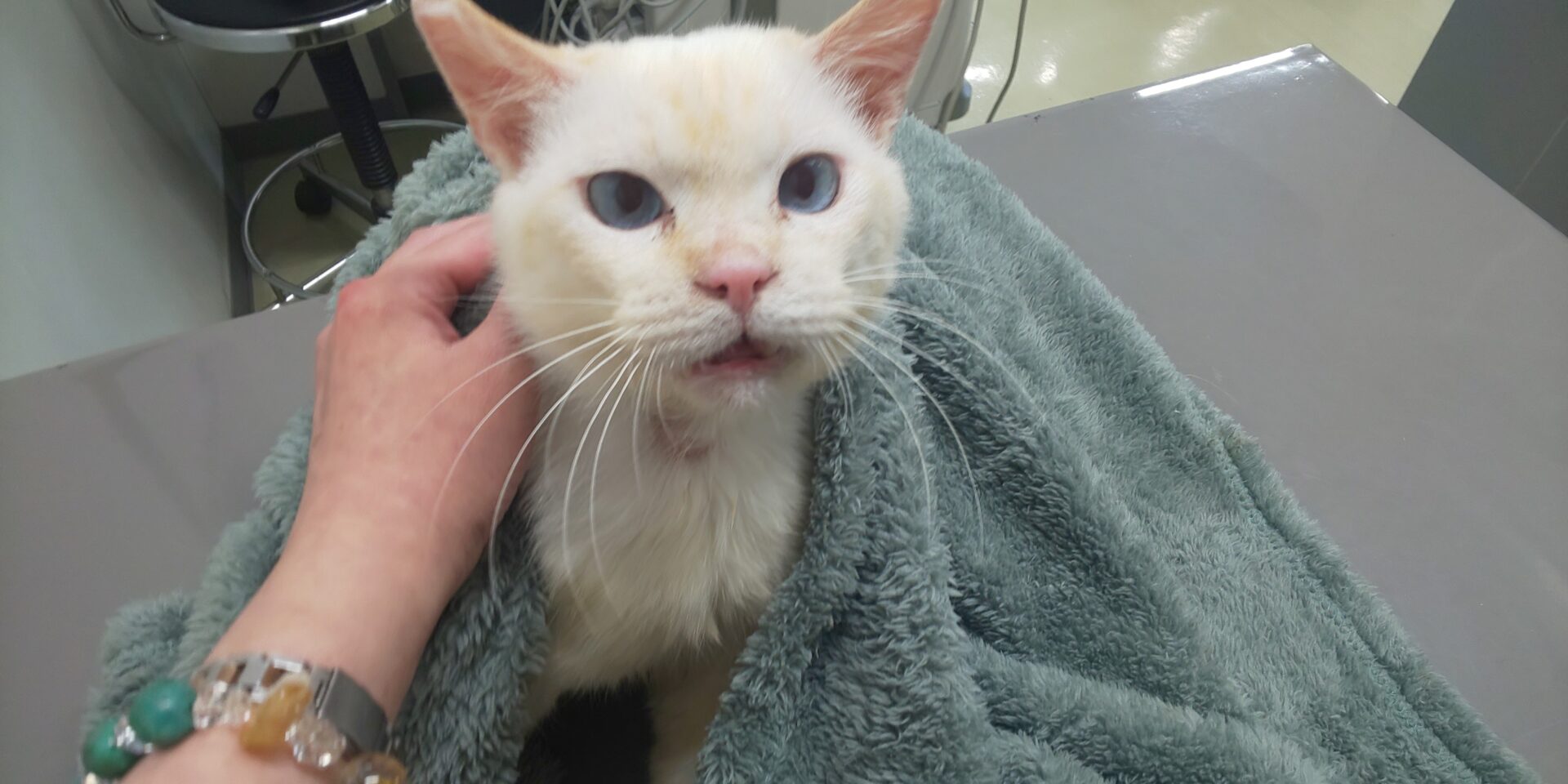 現場でガリガリに痩せて弱っており、緊急性があると判断しその場で保護しました。