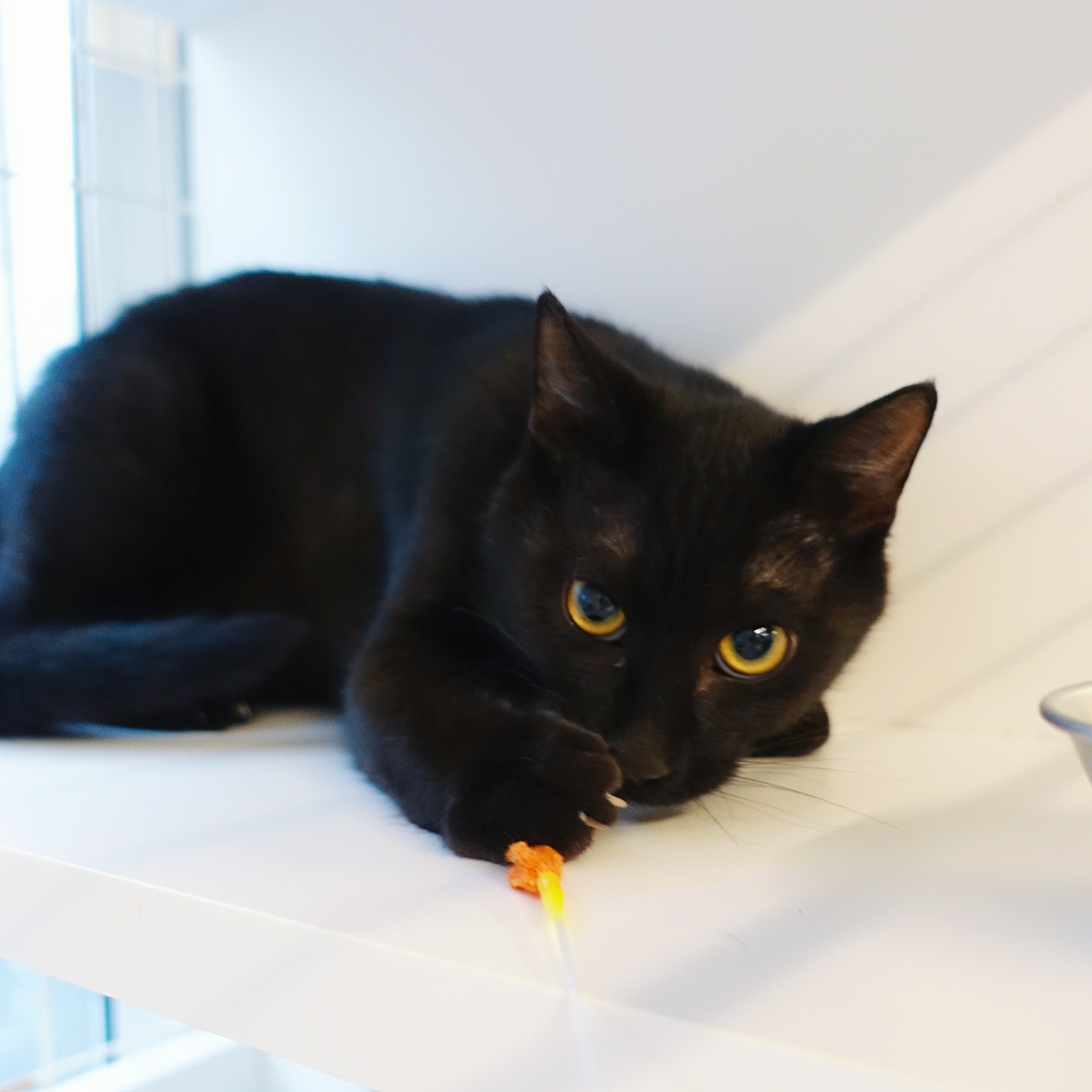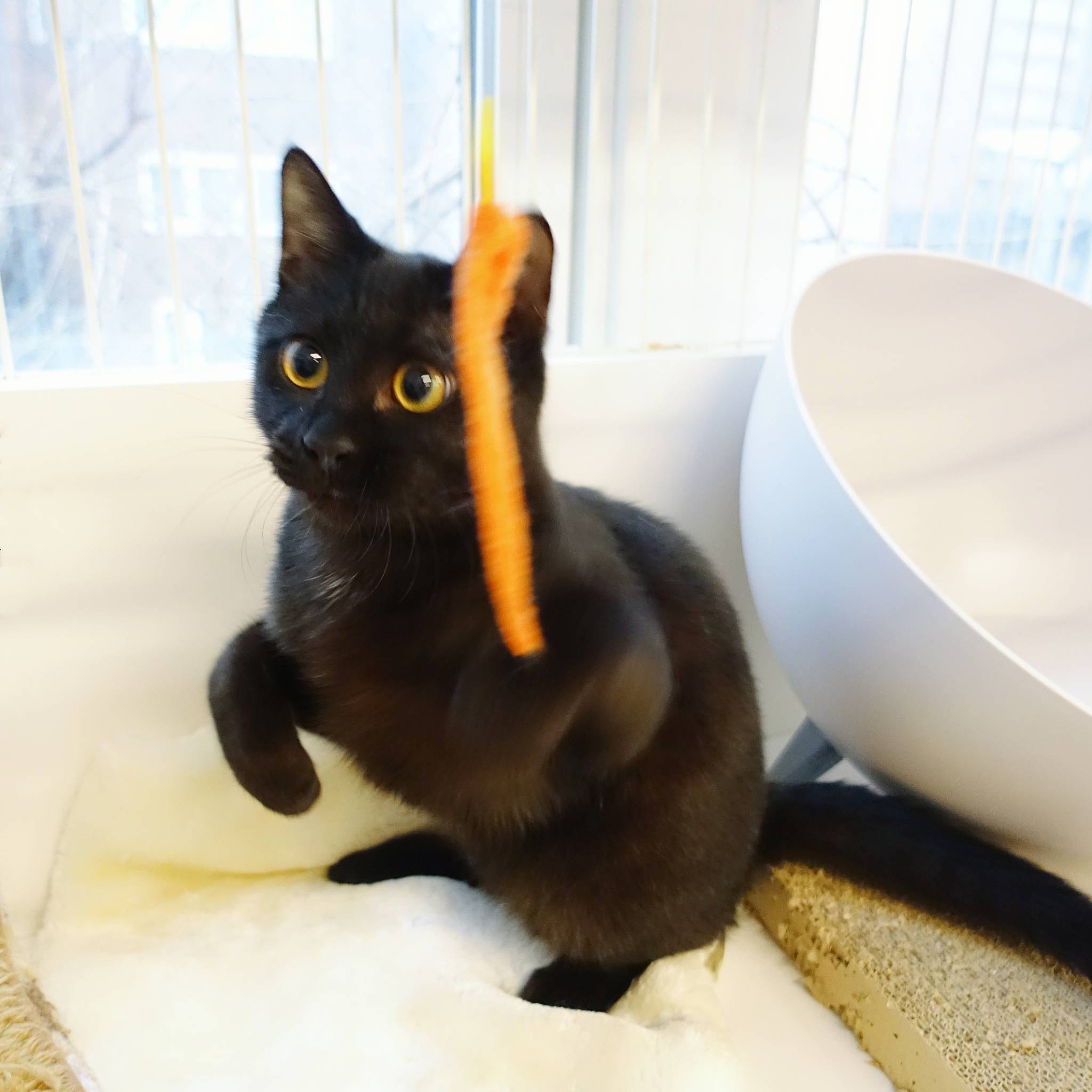 人との間にはうすーい壁があり撫で撫で抱っこはまだまだ先。だけどおうちに行ったら一気に変化をみせてくれそうな、伸び代大!なともえです。