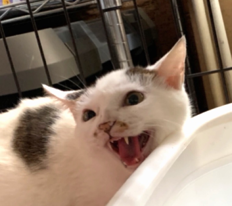 かなりのビビりさんです。挨拶はシャーです。原因は病気治療の時の点眼点鼻。可愛い顔しながらシャーします。