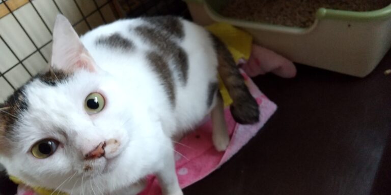 オスにやられたのか、喧嘩に巻き込まれたのか、保護された時には体に脱毛した跡、傷がありました。