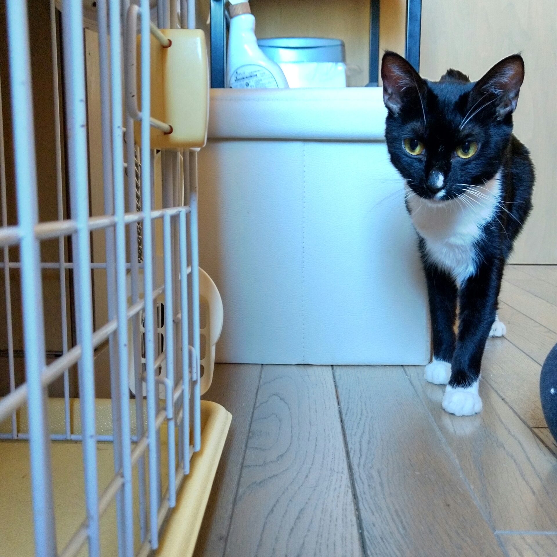 新しい環境に馴染むまでは少しの間ケージがあった方が良いと思います。