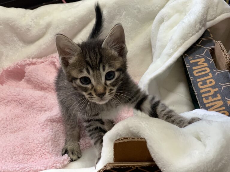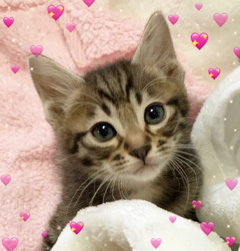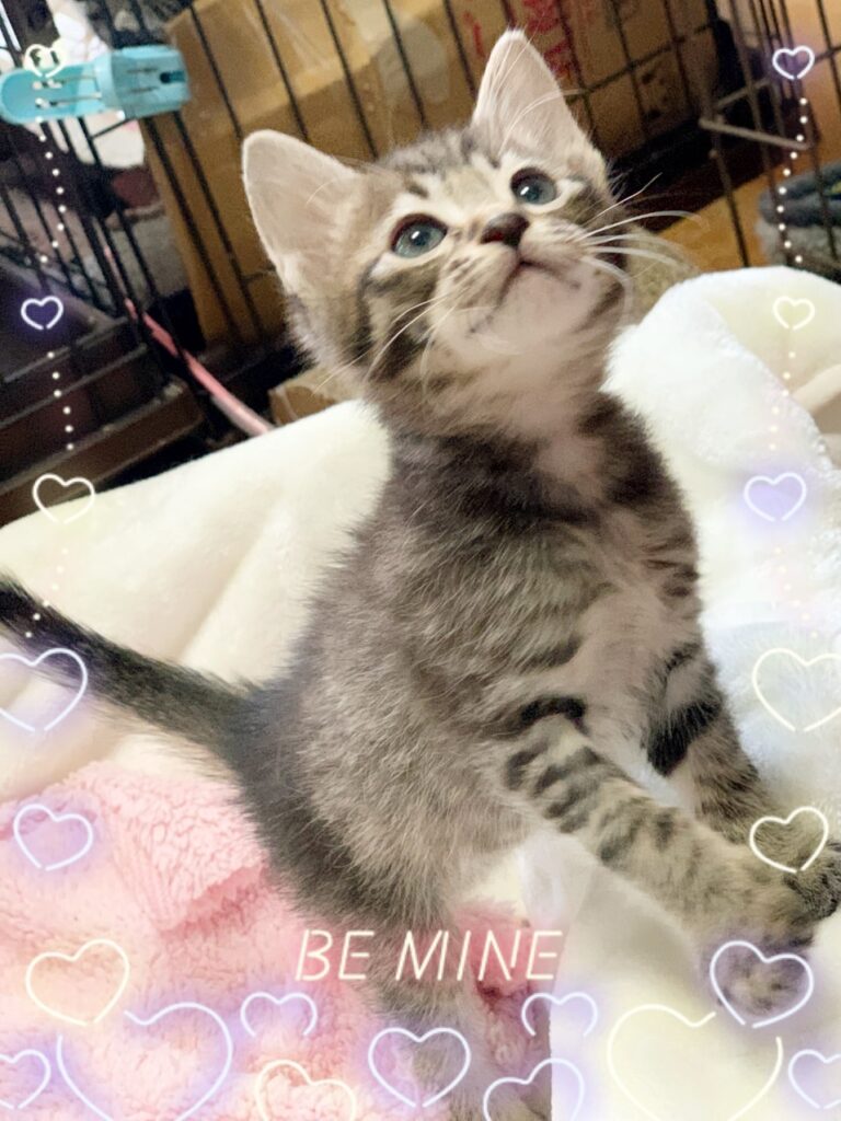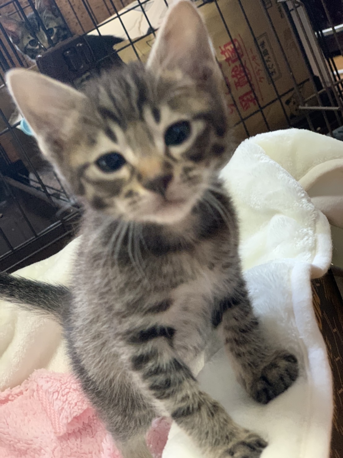 元気に走り回り、疲れたらコテっと眠る子猫らしい面と、羽の猫じゃらしは咥えたら離さない猫らしさ。かわいいキジトラ男子です。