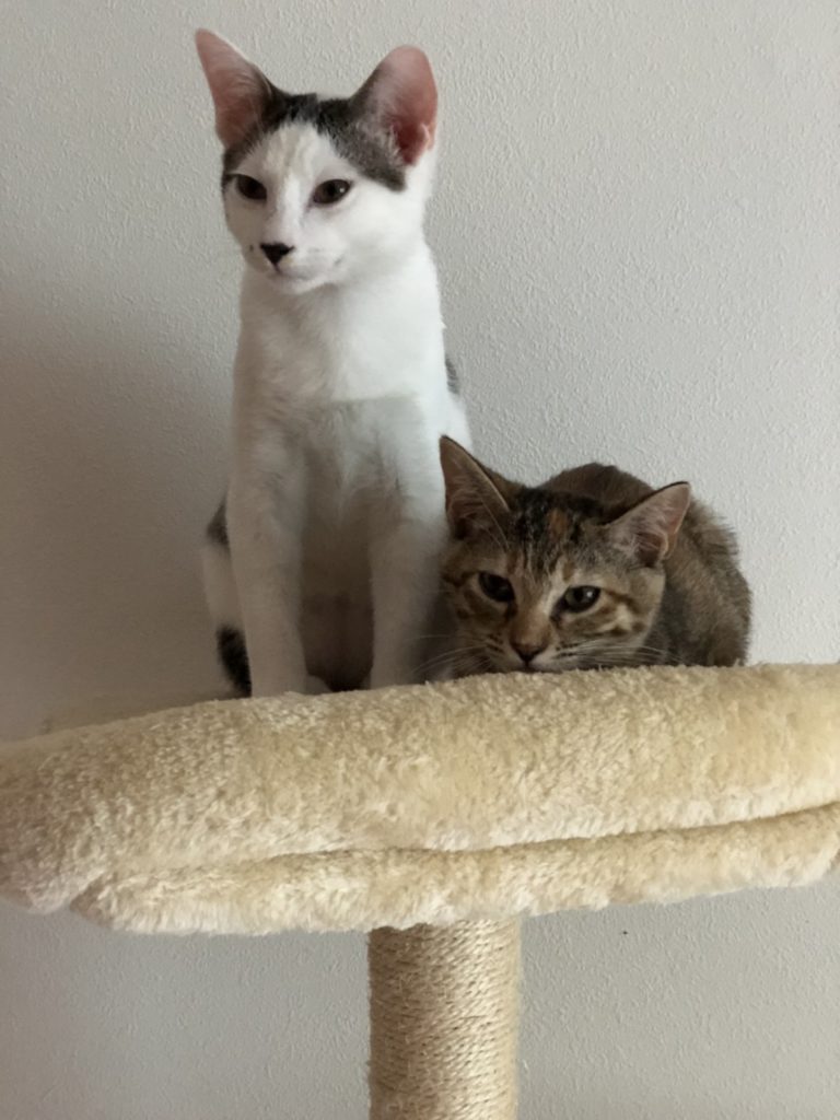 一緒に過ごすオス2匹に比べると控えめですが、仲良く遊んでいます。