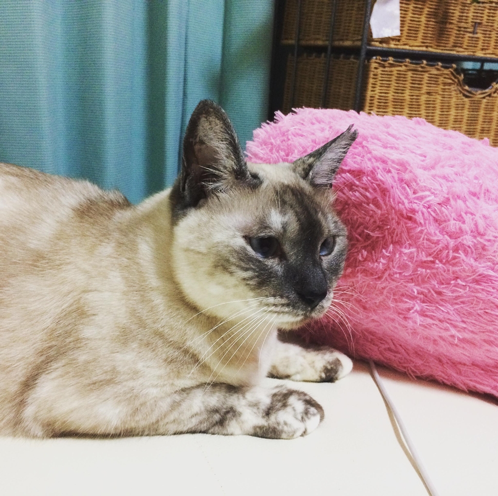 まぐろが大好きで、匂いがすると台所で待ち、手にちょいちょいして催促もします。