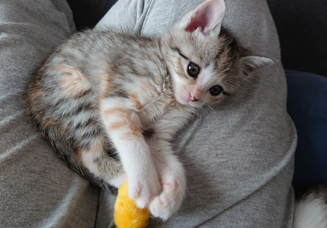 元気に走り回って遊び 疲れたらお膝の上で眠ります。