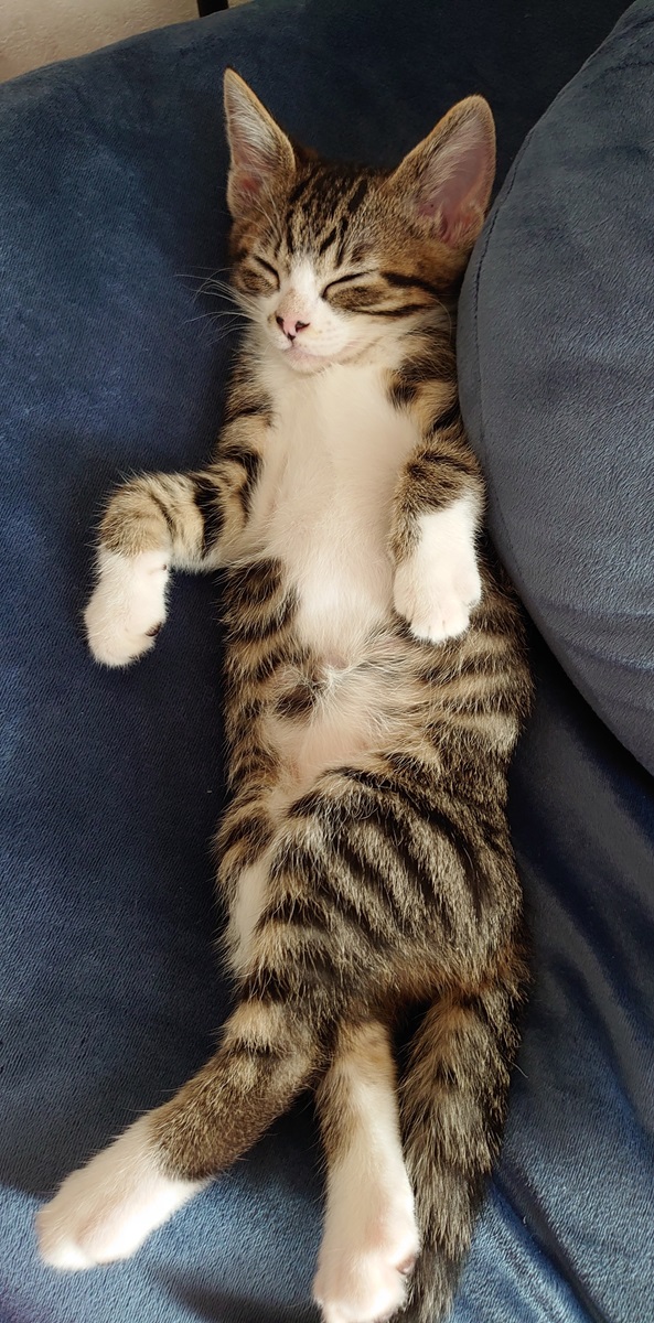 基本的におっとりした女の子らしい子ですが、バンザイしたり足を組んだりする寝姿が中々変わっていて面白い子です。