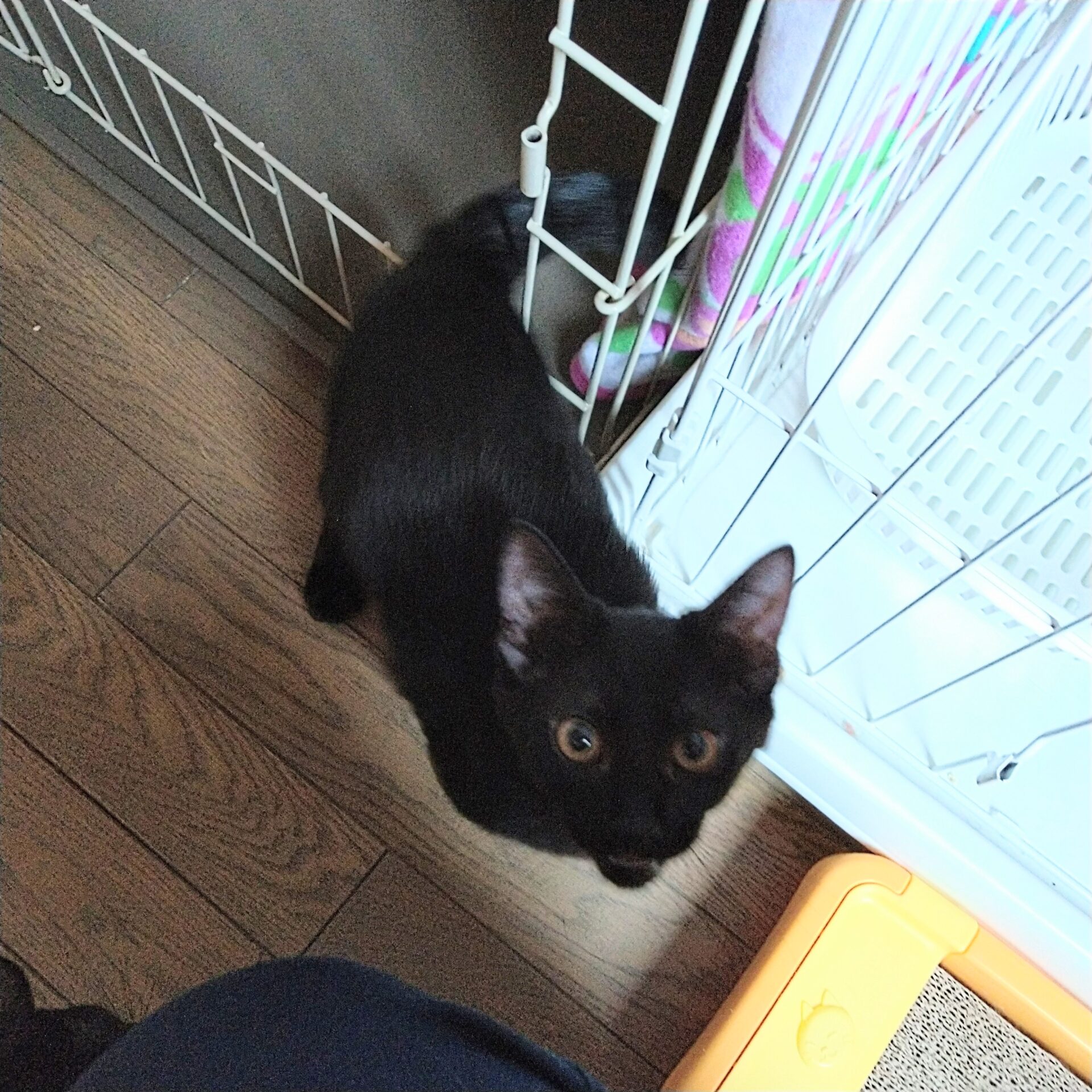 保護部屋に行くと喜んで飛んできて、張り付いてぶら下がっています笑